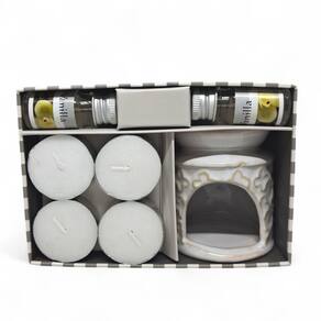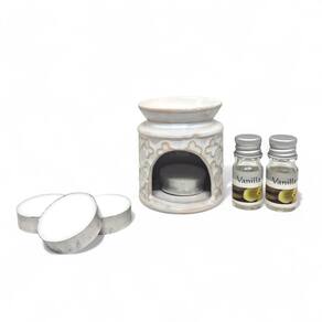 Essência de baunilha: 10ml Altura Turíbulo: 8 cm Largura Turíbulo: 6 cm Largura Vela: 4 cm