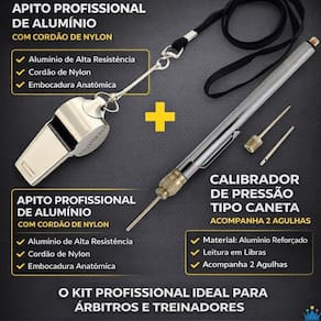 Tenha controle e profissionalismo em treinos, jogos e competições com o Kit Uhlsport, que reúne dois itens essenciais para árbitros, treinadores e profissionais do esporte: Apito Profissional e Calibrador de Pressão tipo caneta. Um combo prático, resistente e indispensável para quem leva o esporte a sério.