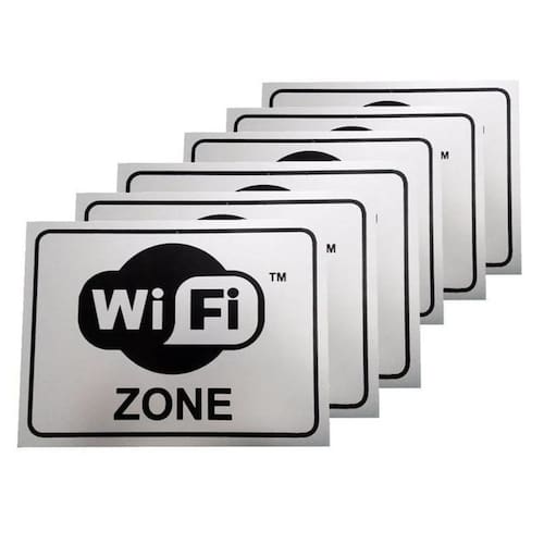Kit Un. 6 Placa Pvc Wifi Zone Auto-Adesiva Jaime Indicado para locais que não recebam excessiva luz solar; Placa pra sinalização PVC; Indicações para fixação: Limpe a superfície onde será aplicada a sinalização utilizando álcool, retire o liner do verso do produto e aplique no local. Medida:14,3 x 19,5 cm Espessura 1mm Características: Fixação Auto-Adesiva; Impressão em Serigrafia.