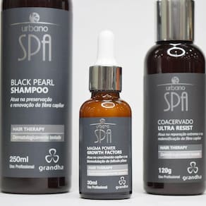 Especialmente criado para aplicação em tratamentos de queda capilar, urbano spa black é um sistema integrado de fatores de crescimento nanoparticulados que atuam em sinergia no favorecimento da recuperação capilar e na biomodulação do folículo piloso. Estabelece ação simultânea em três diferentes rotas, combatendo a atrofia folicular induzida pela dht e melhorando o processo de síntese proteica.