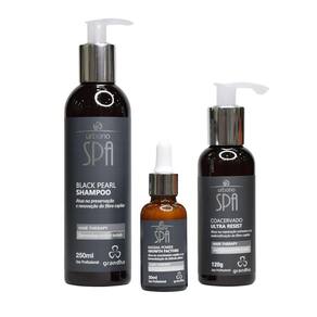 Composto por 3 produtos: Black pearl shampoo 250 ml Coacervado ultra resist 120 g Magma power growth factors 30 ml