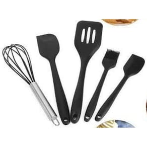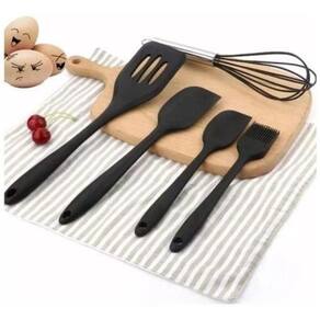 Kit Utensílios Cozinha De Silicone Não Risca 5 Peças Preto Jogo Utensílios Cozinha 5 Peças Em Silicone Rosa