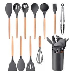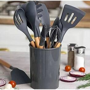 Lindo jogo com 12 utensílios domésticos, para deixar a hora do preparo da sua comida mais alegre e gostoso.- Suporta alta temperatura: faixa de temperatura - 40 a 230 C- Fácil de limpar: podem ser lavados na máquina de lavara louça- Duráveis, flexíveis, não se deformam- Não tóxico, livre BPA- Não riscam a panela- Possuem furo para pendurar- Cabo não transmite calor- Material resistenteContém:1 Colher Vazada 31,5 cm 1 Espátula 32 cm 1 Colher 31,5 cm 1 Espátula Vazada 32 cm 1 Colher Espátula 32 cm 1 Espátula Pão Duro 31,5 cm 1 Pegador de Massa 31 cm 1 Concha 31 cm 1 Pincel 27 cm 1 Pegador de Salada 27 cm 1 Batedor de Claras 24,5 cm 1 Pote 15 x 12 cm Material Corpo: SiliconeMaterial Cabo: MadeiraGarantia do vendedor: 30 dias