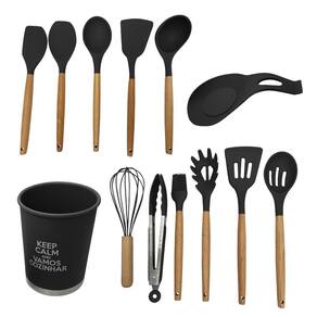 Esse conjunto de utensílios para cozinha é perfeito para trazer mais praticidade e organização no seu dia a dia, com 13 peças indispensáveis para os preparos diários. Com o cabo em madeira, os utensílios trazem mais durabilidade e beleza ao produto, deixando sua cozinha mais charmosa e elegante.