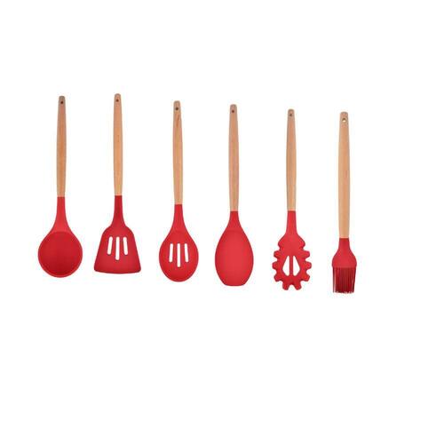 Kit utensílios de silicone cozinha com cabo madeira Kit 6un de utensílios de silicone cozinha com cabo de madeira