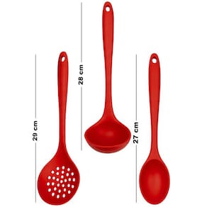 Ideais para proteger suas panelas antiaderentes de arranhões, os talheres que compõem esse kit são fabricados em material de silicone de ótima qualidade, também são resistentes a altas temperaturas e livres de BPA. – Fácil de limpar: podem ser lavados na máquina de lavara louça – Duráveis, flexíveis, não se deformam – Não riscam a panela – Possuem furo para pendurar Contém: 1 Concha (28cm x 7,5cm) 1 Colher multiuso (27cm x 6cm) 1 Escumadeira (29cm x 8,5cm) Marca: Não Informado