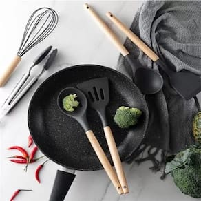Porque adquirir o Kit Utensílios de Silicone Preto 12 Peças com Cabos de Madeira e Suporte