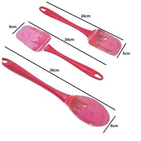 Transforme o preparo das suas receitas e sobremesas com este kit completo de 4 utensílios essenciais para o dia a dia na cozinha. Com design moderno e funcional, este conjunto é ideal para quem busca praticidade sem abrir mão do estilo.Características:Ponta em silicone que não risca suas panelasAs espátulas e a colher possuem cabos em acrílicos resistentes e confortáveis de segurarO batedor fuê possui cabo de inoxSuportam temperaturas de até 180 grausCompactos, fáceis de lavar e armazenarFuncionalidades:A espátula multiuso é perfeita para mexer alimentos na panela e raspar tigelas sem desperdício.A espátula pão duro alcança cada cantinho da massa com precisão.A colher de servir é ideal para mexer ou servir recheios e preparos variados.O batedor fuê mistura, bate e incorpora ingredientes com eficiência, ideal para molhos, claras, cremes e mais.Inclui:1 Espátula Multiuso – 24 cm1 Espátula Pão Duro – 24 cm1 Colher para Servir – 30 cm1 Batedor Fuê – 30 cm Marca: Não Informado