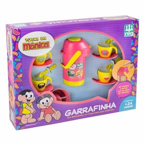 Kit Utensílios Infantil - Turma da Mônica - Garrafinha - Nig Brinquedos: qual criança não gosta de brincar de casinha? Na linha faz de conta, o kit Garrafinha da Turma da Mônica, faz sucesso com as crianças. A fantasia torna-se motivo para horas de diversão, socialização e integração. Produzido com matérias resistentes, brilhosos e super coloridos, as crianças podem brincar com o kit de forma segura. Detalhes: • Garrafinha de chá e café: só apertar o botão que sai água de verdade • Contém 14 peças: diversos acessórios e utensílios Informações: • Produto: Kit Utensílios de Cozinha Infantil Garrafinha • Marca: NIG Brinquedos • Coleção: Turma da Mônica • Tipo: Utensílios de cozinha de brinquedo • Categoria: Brincando de Casinha • Subcategoria: Kits e Utensílios de Cozinha Infantil • Conteúdo: 14 peças - 01 Garrafinha - 01 Forminha de Bolo - 04 Pratinhos - 04 Xicaras - 04 Colheres • Idade recomendada: para crianças a partir de 03 anos de idade Especificações: • Referência: 0757 • Código de Barras: 7896200707572 • Embalagem (C x A x L): 42 x 32 x 8.5 cm • Embalagem (Peso): 0.480 Kg • Composição / Material: Plástico • Registro: 006169/2021 • Certificado: Órgãos Autorizados - OCP´S (Organismos de Certificação de Produtos) Aviso: • As imagens são meramente ilustrativas • Os pesos, tamanhos e medidas são aproximados • As cores e estampas dos produtos podem ter variações • As informações são de responsabilidade do fabricante ou fornecedor