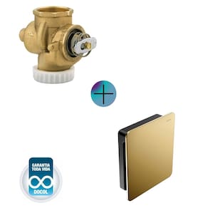Os acabamentos para válvula de descarga DocolFlat é compatível com qualquer base Docol e não requer nenhum tipo de modificação hidráulica. O acabamento para válvula de descarga da linha DocolFlat possui todas as funções numa única peça, com traços arredondados nas bordas e um formato reto na superfície. Esse acabamento, na cor ouro polido, se encaixa em todas as opções de válvula da nossa marca, a fim de dar liberdade de escolha no seu projeto.