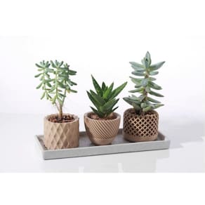 Kit vasos suculenta moderno Cor: Branco Kit vasinhos para suculenta mais moderno Fica bem legal com um vaso sozinho ou também como um kit com 3 vasinhos ITENS INCLUSOS 3 vasinhos e base para colocar os vasos, é bem completo Não inclusos: Planta apenas os vasos e base INFORMAÇÕES TÉCNICAS / ESPECIFICAÇÕES Material: Plástico Peso:35g Fabricante: SNS3D Dimensões : 5cm x 7cm x 4cm Observações Não usamos tinta nos produtos. A matéria prima já é da cor informada. No campo de especificações técnicas você encontrará o material utilizado para este produto. De acordo com cada tipo de produto, usamos um material específico para que atenda a necessidade e objetivo do produto. O material pode variar, mas o método de fabricação é o mesmo. Fabricamos nossos produtos via impressão 3D. Imagens ilustrativas Fabricado via impressão 3D, este tipo de produto possui marcas características do método de fabricação. Os prazos apresentados durante o procedimento de compra são estimativas informadas automaticamente pelos Correios e ou Transportadoras. Eventuais atrasos podem ocorrer. Em caso de dúvidas, basta nos procurar pelos nossos canais de atendimento. Evitar de colocar o produto direto a exposição do sol pois pode existir pequenas deformações Nos termos dos artigos 132 da lei 9.279/96 e do artigo 31 da lei 8.078/90, a menção à Marcas e Modelo aqui apresentadas, servem para indicar a destinação do produto, bem como assegurar informações claras e precisas de compatibilidade aos consumidores. Marca: Sns3D