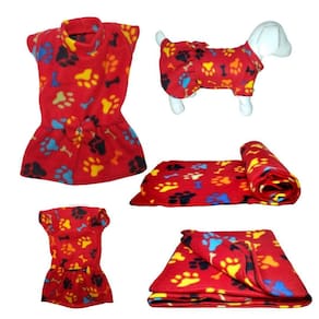 Kit Vestido E Manta Soft Para Cães -Vermelho Eg Kit vestido e manta de inverno para cachorro. - os dois em tecido soft; - ótimos para aquecer seu pet em dias de frio; - cor: vermelho com patinhas coloridas; - vestido no tamanho: eg - manta no tamanho: g Medidas vestido - eg: Pescoço - 40 cm de circunferência; abdômen/tórax - 58 cm de circunferência; comprimento - 56 cm. Medida manta - g: 90 cm de largura x 145 cm de comprimento. Marca: Nicapet