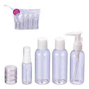Kit Frascos para Viagem com 5 frascos e 1 nescessárie transparente