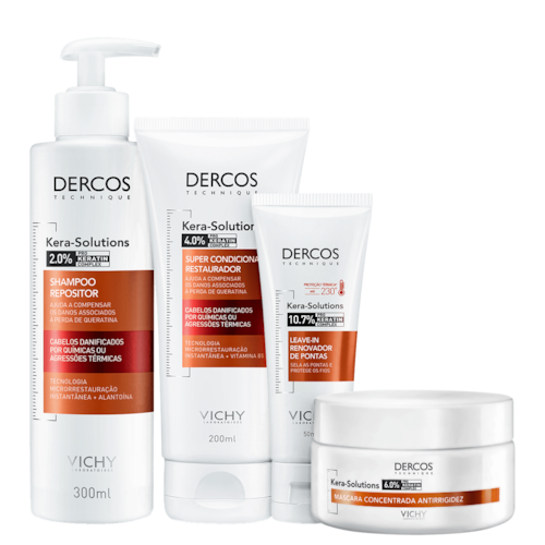 Vichy Dercos Kera-Solutions - Máscara Capilar 200ml: tratamento para cabelos danificados por químicas ou agressões térmicas do secador e chapinha, penetra nas cutículas renovando os fios de dentro para fora. Assim, o cabelo fica mais saudável e resistente à química e agressões externas.