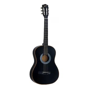 ESPECIFICAÇÕES: Não é elétrico Cor: Preto Tipo: Acústico Nível: Iniciante Cordas: 6 Escala: 19 Cavalete: 1 Quantidade de trastes: 19 Tarraxas: 6 Acabamento: Verniz Material: Bétula Cordas de aço Dimensões: 97x40x11 cm (AxLxC) Largura do braço: 5,5cm