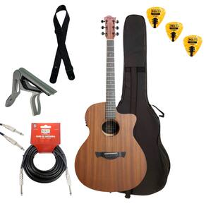 Kit Violão Eletroacústico Tagima Dallas Mahogany GRAN RESERVA Com Capa + Correia Cabo P10/P10 Capotraste - Cor: Natural Open Pore