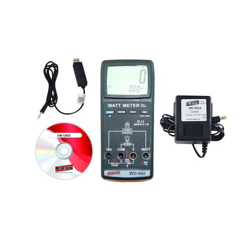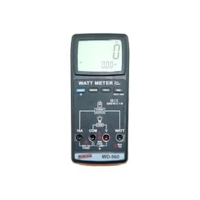 KIT WATTÍMETRO DIGITAL CAT III, TRUE RMS, PARA MEDIÇÃO DE POTÊNCIA ATIVA, CORRENTE AC, TENSÃO AC E FATOR DE POTÊNCIA MOD. WD-960 + ADAPTADOR MOD. AC-100 AC/DC 9V 300MA, COMPATÍVEL COM DIVERSOS EQUIPAMENTOS MOD. DD-005 / DD-020 / DD-100 / DD-200 / DD-300 / MO-900 / PH-1900 + CABO DE COMUNICAÇÃO MOD. USB-01 SAÍDA DIRETA E ISOLADA COMPATÍVEL COM MOD. THAR-185, DD-300, DD-500, LDR-208, MRUR-630 + SOFTWARE PARA INSTRUMENTOS MOD. SW-U801 UTILIZADO P/ DIVERSOS EQUIPAMENTOS DESCRIÇÃO: O Wattímetro digital modelo WD-960 se trata de uma ferramenta precisa que possibilita a medição de grandezas elétricas (VAC, ACA, PF e W) de uma forma simples a prática, a carga a ser medida pode ser conectada diretamente em seus bornes. DESTAQUES: True RMS, saídas de dados para conexão com PC, possibilita a conexão da carga diretamente no borne, categoria de segurança: CAT III 600V, memoriza as medições máximas e mínimas e permite congelamento de tela (HOLD). APLICAÇÕES: Medição de potência das mais diversas cargas como: lâmpadas, reatores, eletrodomésticos, motores monofásicos e bifásicos, chuveiro, torneira elétrica, ferramentas elétricas, entre outros. ESPECIFICAÇÕES TÉCNICAS: Display LCD duplo de 9999 contagens de 21,8 x 8,5mm, retroiluminado. Medição de potência ativa (W): Faixa de medição: 1 W a 6000 W Resolução: 1 W Precisão: ± (1% + 5W) Medição de tensão alternada (VAC): Faixa de medição: 0,1 V a 600,0 V Resolução: 0,1 V Precisão: ± (0,3% + 0,3 V) Medição de corrente alternada (ACA): Faixa de medição: 0,01 A a 10,00 A Resolução: 0,01 A Precisão: ± (0,3% + 0,03 A) Medição do fator de potência (PF): Faixa de medição: 0,01 PF a 1,00 PF Resolução: 0,01 PF Precisão: ± (1% + 2 dígitos) Medição RMS em tempo real de ACV / ACA. Gravação de memória (Máx., Mín.) Retenção de dados: Congela a leitura do mostrador (HOLD) Saída de dados para o PC Indicador de bateria fraca. Luz de fundo verde de fácil leitura. Circuito LSI microprocessado Ajuste de zero automático Indicador de sobre escala Tempo de amostragem: Aproximadamente 1 segundo Temperatura de operação: 0ºC a 50ºC (32ºF a 122ºF) Umidade de operação: Inferior a 80 % UR Alimentação: Bateria de 9V tipo alcalina ou adaptador 9V (Opcional) Consumo de energia: Aproximadamente DC 10 mA Peso: 398 g. Dimensões: 190 x 88 x 40 mm (7,5 x 3,5 x 1,6 pol) ITENS FORNECIDOS: Wattímetro digital WD-960 Adaptador AC-100 Cabo comunicação USB-01 Software SW-U801 Pontas de teste (vermelho e preto) Bateria 9V Cartão com instruções do Download do manual virtual