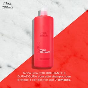 Shampoo para cabelos coloridos. Wella Professionals Invigo Color Brilliance Shampoo limpa os fios de forma otimizada para proteger do desbotamento. Ele consegue preservar a cor vibrante por até 7 semanas.