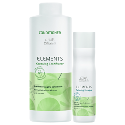 O Kit Wella Professionals Elements Calming + Renewing Duo Salon traz produtos com formulação de até 95% dos ingredientes de origem natural. Além de cuidar da saúde da fibra, também reduz e protege contra os danos perceptíveis, hidrata, nutre e equilibra. É dermatologicamente testado e sem silicones.