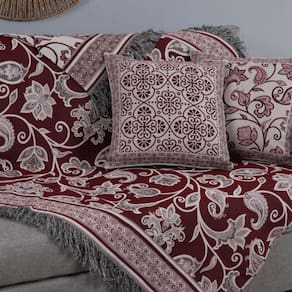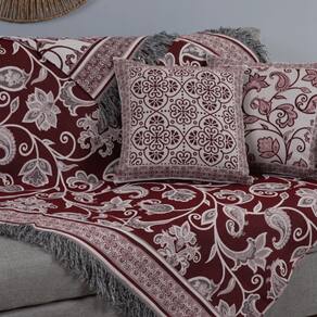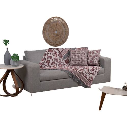 Kit Xale Sofá Com Almofadas Cheias Jacquard 5Pçs Dupla Face
