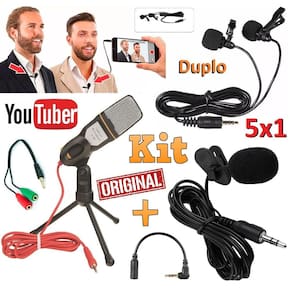 Kit youtuber 5x1 microfone condensador mesa profissional + microfone duplo lapela celular câmera dslr universal Kit youtuber com eletrônica Kit youtuber microfone duplo lapela + microfone condensador mesa + lapela Kit profissional,completo,de qualidade e com eletrônica.São 5 itens para melhor qualidade de seus vídeos e fotos. O kit contém: 1 microfone duplo de lapela 1 microfone condensador de mesa acompanha mini tripé 1 microfone de lapela p2 1 adaptador p2 para microfone e fone de ouvido 1 adaptador p2 para microfone duplo Microfone duplo de lapela São 2 microfones ligados a somente um plug. - o microfone duplo funciona em celulares sem precisar utilizar adaptador. Obs: celular precisa ter entrada p2/p3. comprimento do cabo do microfone: 1 metro e meio. Adaptador permite que o duplo microfone de lapela seja utilizado em câmeras,dslr, computadores e em outros aparelhos. Microfone de lapela p2 O adaptador permite que o microfone de lapela seja utilizado em celulares ou em aparelhos que não tenham entrada para plug p2 de 3 vias .Microfone condensador de mesa O microfone condensador de alta sensibilidade profissional é um dos mais completos do mercado, com ótimo custo benefício. Ideal para e amador, exercendo suas gravações com maestria. Possui conexão p2 padrão de microfone, o que torna o uso universal seja em pc,notebook,também acompanha adaptador para usar o microfone em celulares. Aviso: em celulares nokia com o sistema operacional windows phone e em go pro não funcionam. Melhor kit custo benefício. 7893330202021 Homologação Anatel: 136132205567 Marca: Não Informado