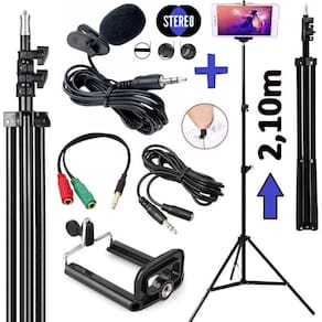 Kit youtuber tripé 2,10m de alcance pedestal + microfone de lapela profissional extensor gravação de vídeo celular live Atenção só compre produtos com lacrado em sua embalagem Kit tripé 2,10m câmera celular microfone lapela + extensão + suporte celular Kit profissional,completo,de qualidade e com eletrônica.São itens de qualidade com tripé todo em alumínio para melhor qualidade de seus vídeos e fotos. O único com extensão de 3 metros O adaptador permite que o microfone de lapela seja utilizado Em celulares ou em aparelhos que não tenham entrada para plug p2 de 3 vias  comprimento do cabo do microfone: 1,5 metros.   comprimento do cabo extensor : 3 metros.  Totalizando 4,5 metros. Aviso: em celulares nokia com o sistema operacional windows phone não funciona. Atenção o aparelho precisa ter entrada p2/p3 Tire fotos com qualidade, filme sem tremulações e registre os melhores momentos com perfeição Tripé robusto de alta qualidade, possui molas internas para amortecimento, braçadeiras reforçadas em nylon, altura de 2,10 mts, abertura dos pés de 88 cm promovendo boa estabilidade, pino 5/8 com rosca 1/4 para usar diversos tipos de equipamentos. Pintura preta, tornando - o mais discreto no ambiente de cine & foto. Reforçado, chegando a suportar 6 kg , pode ser com diversos equipamentos de iluminação. acompanha suporte para celular universal . Além disso este tripé é um modelo muito recomendado para utilização junto a equipamentos fotográficos e iluminação, uma vez que possui uma estrutura resistente com composta por materiais de alumínio e partes plásticas, conseguindo alcançar uma altura máxima de 2,10 metros e mínima de 68cm quando totalmente fechado, pesando somente cerca de 780 gramas, sendo portanto, carregado com muita facilidade e praticidade. O tripé de iluminação tpi-200 ainda possui 3 seções e 3 travas, que proporcionam ao usuário uma regulagem na altura, de forma que possibilite ao mesmo criar diversos modos de uso, conforme a necessidade de operação em cada um de seus trabalhos. O kit contém:  1  tripé profissional de até 2,10m de alcance  1  suporte adaptador para celular  1  microfone de lapela  1  adaptador p2  1  cabo extensor de 3 metros Atenção: Não acompanha celular ou dispositivos. lacrado em sua embalagem . Postamos em até 24 horas úteis. Homologação Anatel: 136132205567