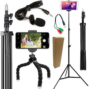 Kit youtuber tripé pedestal microfone lapela celular smartphone + tripé flexível universal Kit ,completo,de qualidade e .São itens para melhor qualidade de seus vídeos e fotos. O kit contém: 1 tripé de até 2,10m de alcance para celular ou câmera. 1 microfone de lapela 1 adaptador p2 para celular 1 mini tripé flexível 1 suporte adaptador de celular para usar nos tripés Tripé robusto de alta qualidade, possui molas internas para amortecimento, braçadeiras reforçadas em nylon, altura de 2,10 mts, abertura dos pés de 88 cm promovendo boa estabilidade, pino 5/8 com rosca 1/4 para usar diversos tipos de equipamentos.Pintura preta, tornando - o mais discreto no ambiente de cine & foto.Reforçado, chegando a suportar 6 kg , pode ser com diversos equipamentos de iluminação. acompanha suporte adaptador de celular para usar nos tripés . Além disso este tripé é um modelo muito recomendado para utilização junto a equipamentos fotográficos e iluminação, uma vez que possui uma estrutura resistente com composta por materiais de alumínio e partes plásticas, conseguindo alcançar uma altura máxima de 2,10 metros e mínima de 50cm quando totalmente fechado, pesando somente cerca de 780 gramas, sendo portanto, carregado com muita facilidade e praticidade. O tripé de iluminação tpi-200 ainda possui 3 seções e 3 travas, que proporcionam ao usuário uma regulagem na altura, de forma que possibilite ao mesmo criar diversos modos de uso, conforme a necessidade de operação em cada um de seus trabalhos. O adaptador permite que o microfone de lapela seja utilizado em celulares ou em aparelhos que não tenham entrada para plug p2 de 3 vias comprimento do cabo do microfone de lapela: 1 metro e meio. Atenção: seu aparelho precisa ter entrada p2 para o microfone de lapela funcionar. Atenção a cor do mini tripé flexível é escolhida aleatoriamente, conforme a disponibilidade em Melhor kit custo benefício. Postamos em até 24 horas úteis. Homologação Anatel: 136132205567