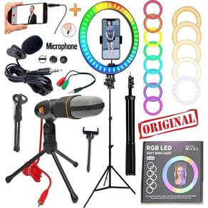 Kit youtuber tripé ring light led rgb colorido iluminador led microfone condensador profissional gravação vídeo celular Kit youtuber com eletrônica Kit microfone de mesa + lapela iluminador ring light rgb tripé 2,10m Kit profissional,completo,de qualidade e com eletrônica.São itens incluindo tripé todo em alumínio para melhor qualidade de seus vídeos e fotos. Com este modelo você consegue usar o celular tanto na vertical quanto na horizontal Possui também ball head permite rotação de 360º do ring O kit contém: 1 microfone de lapela 1 microfone condensador de mesa profissional com mini tripé 1 tripé de até 2,10m de alcance 1 anel ring light de led 26cm rgb 1 encaixe articulado 1 suporte de celular para o ring light 1 adaptador p2 O adaptador permite que o microfone de lapela seja utilizado Em celulares ou em aparelhos que não tenham entrada para plug p2 de 3 vias comprimento do cabo do microfone de lapela: 1 metro e meio. Aviso: em celulares nokia com o sistema operacional windows phone não funciona. O microfone condensador de alta sensibilidade profissional é um dos mais completos do mercado, com ótimo custo benefício. Ideal para e amador, exercendo suas gravações com maestria. Possui conexão p2 padrão de microfone, o que torna o uso universal seja em pc,notebook,também acompanha adaptador para usar o microfone em celulares. O ring light led rgb possui 6 tipos de cores, tem 3 opções de temperatura de cores e 10 opções de intensidade da cor, podendo ser alternados direto no controle de iluminação, os efeitos podem ser de acordo com diferentes ambientes de escurecimento. Também possui as cores tradicionais -branco -branco frio -branco quente Com o ball head em rotativa de 360 graus é fácil de ajustar o ângulo de luz desejado Sua alimentação é atraves do usb que pode ser em computador host, laptop, banco de energia móvel ou ligado na tomada através de um adaptador de celular não acompanha O ring light é perfeito para streaming , estudos, fotos, video, filmagem e muito mais. Características do produto: . Possui controle remoto com fio para controle das cores e efeitos desejados em seus ambientes, vídeos e fotos; . Possui tripé de 2,10 cm de altura, super resistente que proporciona maior estabilidade para o equipamento; Está incluso também o suporte pra colocar o celular no meio do ring light Dimerizável: sim Tamanho do ring light: 26 cm - equivalente a 10 polegadas Possui suporte para celular: sim Melhor kit custo benefício. Postamos em até 24 horas úteis. Importante: Fotos ilustrativas Kit acompanha uma unidade de cada item Homologação Anatel: 060792000160 Marca: Não Informado