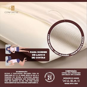 Recomendações: Deixar o travesseiro arejado fora da embalagem de 12 a 24 horas antes de usá-lo a primeira vez devido a eventuais aromas residuais de fabricação. Este travesseiro não pode ser exposto ao sol. Pois pode causar ressecamento de sua estrutura, danificando-o.
