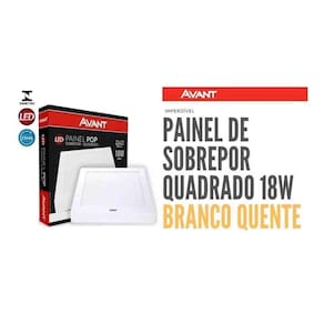 Painel Led Sobrepor Quadrado 18W 6500K Bivolt Branco Frio Avant 768101372A Mobilar Eletro está no mercado há mais de 25 anos inovando em produtos e atendimento estabelecendo uma relação de confiançaA linha de painel pop sobrepor é indicada para instalações diretamente sobre a caixa de passagem, em superfícies de alvenaria ou concreto.Compre agora mesmo com a Mobilar EletroCaracterísticas do produto:Temperatura ambiente: -5C a 40C.Tensão nominal: 100V a 240V.Fator de potência: 0,50.Baixo consumo de energia.Possui transformador eletrônico isolado.Fluxo luminoso constante em toda faixa de tensão.Tipo de instalação: Sobrepor.Corpo em alumínio e difusor em policarbonato.Especificações Técnicas:Potênca: 24WFluxo Luminoso: 1680lmEficiência Luminosa: 70lm/WÂngulo de abertura: 120Temperatura da cor: 6500KDimensões: 22x22Outras Informações Tensão Elétrica: 110/220V - Bivolt Índice de Proteção: IP20 Tipo do material: Alumínio e Policarbonato Fluxo Luminoso: 1260 lúmens Ângulo de Abertura: 120º IRC: 70 Baixo consumo de energia Vida Útil: 25 mil horasConteúdo da Embalagem:01 Painel Led Sobrepor.