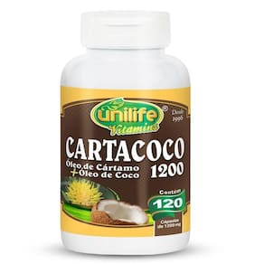 Kit 5 óleo de cartamo e coco cartacoco 1200mg unilife 120 cápsulas O cartacoco é um produto formulado para auxiliar dietas de redução de peso, pois combina o óleo de cártamo com o óleo de coco, dois ingredientes conhecidos por seus poderes na locomoção das gorduras, principalmente a abdominal. É um suplemento rico em ácidos graxos ômega 3 e ômega 6 com fator antioxidante. Além de ácido láurico que auxilia no e tem propriedade termogênica. O óleo de cártamo é rico em ácido oleico ômega 9 e linoleico ômega 6 gorduras boas que o corpo não produz, e que devem ser consumidas por meio da alimentação. Esses ômegas desempenham diversas funções e benefícios do organismo: ação no controle do total, redução de processos inflamatórios, proteção cardiovascular, entre outros. Já o óleo de coco é um lipídio, que proporciona aumento do metabolismo e . Auxilia nas dietas de redução de peso. O óleo de cártamo é rico em ômega 9 e 6, gorduras boas que o corpo não produz e que portanto devem ser consumidas por meio da alimentação. Esses ômegas desempenham diversas funções em benefício do organismo, entre elas podem ser citadas a ação no controle do total, redução de processos inflamatórios, proteção cardiovascular, entre outros. Marca: Não Informado Ean: 7908609502563