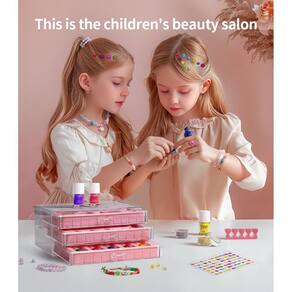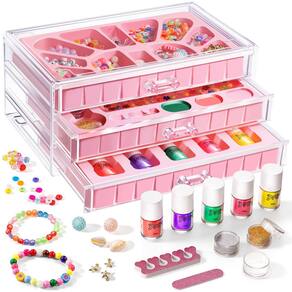 Arte de unha criativa divertida Liberte a criatividade do seu filho com os brinquedos de esmalte DIY que promovem o vínculo entre pais e filhos! Com cinco cores vibrantes de esmalte e paletas de mistura, este conjunto permite que os pequenos criem tons personalizados enquanto se divertem com a mãe ou o pai. Experiência imaginativa de fabricação de joias Incentive brincadeiras imaginativas com 314 contas exclusivas para criar belas peças de joias. Materiais seguros e leves aumentam a destreza e a coordenação motora, tornando este o presente perfeito para inspirar criatividade e habilidades de resolução de problemas — veja seu pequeno artista brilhar! - ?Caixa de armazenamento de acrílico grande e durável?Compacta e leve com 23 x 10 x 13 cm. Feita de material acrílico transparente e durável, esta caixa de joias é resistente a quebras, fácil de limpar e adiciona um toque de elegância à sua área de jogos - ?Design de armazenamento de três camadas?Organize todos os acessórios perfeitamente na caixa de armazenamento de 3 gavetas, com cada camada dedicada a contas, adesivos, glitter e ferramentas para unhas. Gavetas transparentes facilitam a localização de itens num relance - ?Esmalte DIY interativo? Inclui 5 cores de esmalte, uma caixa vazia de glitter e 3 paletas de mistura. As crianças podem criar cores personalizadas misturando e adicionando adesivos para designs personalizados. Fornecendo tudo o que é necessário para horas de diversão e criatividade. Perfeito para festas de meninas e encontros temáticos de moda - ?Artesanato criativo de contas?Com 314 contas exclusivas, as meninas podem criar suas próprias pulseiras, colares e muito mais, promovendo a imaginação e melhorando as habilidades motoras finas por meio de brincadeiras práticas - ?Materiais seguros e não tóxicos?Todas as contas são leves e duráveis, com esmaltes certificados como seguros para crianças (certificados pela CPC, ASTM e CPSIA), garantindo diversão sem preocupações para mães e seus pequenos - ?Ótimo presente para crianças?Este kit de brinquedos de unhas e pulseiras de ótimo valor seria um presente perfeito para ajudar suas meninas a melhorar a coordenação olho-mão, melhorar a capacidade prática e a concentração, ampliar a imaginação, treinar a criatividade e o pensamento lógico. Ótimo presente para aniversário, Natal, Natal