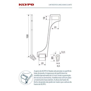 Assista o vídeo e veja como fazer: a garra do klypo é fixada sob pressão no perfil da base da janela basculante. A espessura do perfil mais a guarnição escova ou borracha deve ter medida aproximada de até 8 milímetros sob pressão . Essa medida alcança a grande maioria das janelas basculantes utilizadas nas edificações. Verifique antecipadamente a espessura da base de encaixe, a altura e a largura do fecho da sua janela.