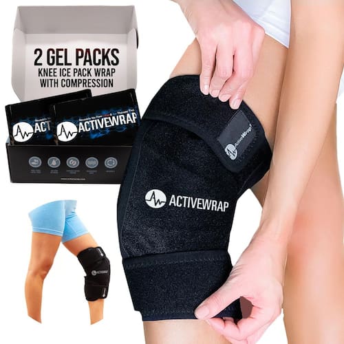 ActiveWrap - Joelho de gelo com compressão, 2 bolsas térmicas e frias de gel reutilizáveis para dor no joelho, pernas doloridas e talas nas canelas. Envoltório frio flexível para controle de lesões e