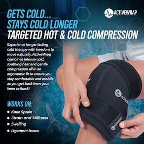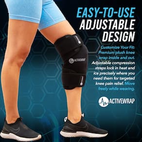 - Dupla compressão quente e fria – use compressão térmica e fria para conforto versátil. Os pacotes de gel permanecem flexíveis, mesmo quando congelados, e cabem em dois bolsos no envoltório para facilitar o controle da temperatura. Ideal para combater inchaço e dor no joelho.