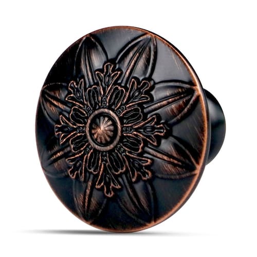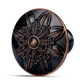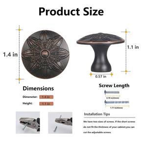 Pacote com 16 puxadores de bronze polido a óleo para armários - Design requintado: o puxador redondo tem um design floral que embeleza melhor seus armários e adiciona um toque de elegância e luxo aos seus móveis. - Tecnologia de galvanoplastia: os puxadores do armário são feitos de liga de zinco sólida 100% de alta qualidade, o processo de galvanização é adotado, com cobre galvanizado e capa esfregada a óleo. Tem forte resistência à corrosão, resistência ao desgaste, sem desbotamento e sem ferrugem. - Quantidade e tamanho do produto: pacote com 16 puxadores de bronze polido a óleo, 32 peças de parafusos M4. O botão tem 3,6 cm de diâmetro (36 mm), base: 14,5 mm (0,57"), altura: 1,1" (28 mm). Dois tamanhos de parafusos métricos 0,87" e 1,77" (22 mm e 45 mm). - Amplamente aplicável: esses puxadores de armário de bronze polido a óleo são adequados para diferentes estilos de armários e gavetas. Armários de banheiro, cômoda, portas duplas de armário, guarda-roupa, armário e muito mais. - Fácil de instalar: dois comprimentos diferentes de parafusos, parafusos de separação ajustáveis de 2,2 cm e 4,5 cm que atendem à espessura das portas de armário e painéis de gavetas convencionais.
