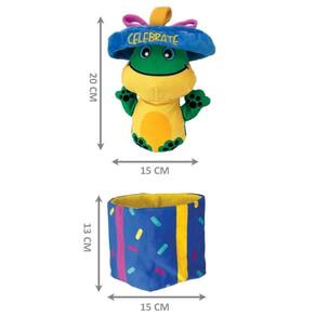 Um guincho na cabeça do pelúcia desperta o instinto natural de forrageamento de seu amigo, enquanto a base da caixa de presente enrugada incentiva seu amigo a continuar a diversão. Pata perfeita para um jogo interativo de arremesso, seu cão vai adorar extrair toda a surpresa do sapo de pelúcia. Este sapo macio torna o tempo de aconchego uma pata.