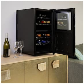 Os especialistas recomendam armazenar vinhos em temperaturas mais altas do que as fornecidas pelo seu refrigerador convencional, especialmente para armazenamento de longo prazo. A unidade Dual Zone de 18 garrafas da Koolatron ajuda você a aproveitar ao máximo sua coleção, com zonas de resfriamento controladas separadamente para seus vinhos tinto, branco e espumante. Esta geladeira independente de vinhos pode manter até 9 garrafas em cada zona, com prateleiras removíveis que permitem personalizar o interior para acomodar garrafas maiores ou de formatos irregulares. A elegante porta de vidro espelhado protege seu vinho dos raios UV prejudiciais, enquanto a iluminação interna suave exibe sutilmente seus vinhos favoritos. A tecnologia termoelétrica avançada resfria de forma eficiente, sem ruído ou vibrações, mantendo seu vinho em uma temperatura constante e pronta para servir, com os sedimentos intactos. Agora você terá muito espaço na geladeira para queijos e canapés! Resfriamento Dual Zone: Zonas superiores e inferiores controladas separadamente podem cada uma manter 9 garrafas padrão de Bordeaux em sua temperatura ideal de armazenamento, para que você possa aproveitar ao máximo seus vinhos favoritos. Controles de Tela Sensível ao Toque: Os controles externos e o display digital permitem visualizar e ajustar a temperatura ou ligar e desligar a luz interna sem abrir a porta, mantendo o ar frio dentro da sua geladeira de vinhos. Conveniência Independente: Você pode colocar esta compacta adega independente em qualquer lugar onde haja uma fonte de energia, para que seus vinhos favoritos estejam sempre à mão. Porta de Vidro com Proteção UV: A porta de vidro duplo espelhado protege seu vinho dos raios UV prejudiciais, enquanto a iluminação interna suave destaca sutilmente sua coleção de vinhos. Resfriamento Silencioso e Confiável: A tecnologia termoelétrica avançada resfria de 8ºC a 18ºC em cada zona de temperatura controlada separadamente, sem vibração para perturbar os sedimentos.
