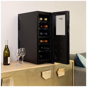 REFRIGERAÇÃO CONFIÁVEL E EFICIENTE - O refrigerador de vinhos Koolatron tem capacidade de 33 litros com faixa de resfriamento da zona superior de 12-18°C e da zona inferior de 8-18°C. O sistema opera sem vibração, preservando os sedimentos no vinho. Feito com qualidade confiável e design inteligente na América do Norte. PORTA DE VIDRO COM PROTEÇÃO UV - Protege seu vinho dos raios UV prejudiciais, enquanto a iluminação interna destaca suavemente sua coleção. O design elegante da porta de vidro, além de preservar a qualidade do vinho, adiciona sofisticação ao ambiente. CONTROLE DE TEMPERATURA - Capaz de manter diferentes temperaturas para vinhos tinto e branco, garantindo que cada tipo seja armazenado em sua temperatura ideal. Ideal para entusiastas de vinho que desejam preservar o sabor de suas bebidas. DESIGN PORTÁTIL E VERSÁTIL - Oferece uma solução flexível e portátil para armazenar seus vinhos e bebidas. Seu design compacto permite colocá-lo em qualquer ambiente com acesso a uma fonte de energia, como cozinha, sala de estar ou bar. ZONA DUPLA DE RESFRIAMENTO - Apresenta zonas superior e inferior controladas separadamente, cada uma com capacidade para 6 garrafas. Mantém seus vinhos favoritos em condições perfeitas. CONTROLES SIMPLES - Facilita a seleção da temperatura ideal e o acionamento da luz interna. Painel de controle intuitivo para operação sem complicações. TAMANHO COMPACTO - Ideal para espaços pequenos como balcões, mesas pequenas ou cantos de cozinha apertados. Elegante e funcional, se encaixa perfeitamente em diversos ambientes. APARÊNCIA ESTÉTICA - Design moderno que valoriza a decoração de qualquer espaço. Operação silenciosa, adequada para ambientes tranquilos.