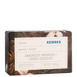 Sabonete em barra cremoso. Korres Jasmim higieniza a pele com sua espuma macia e perfuma com leveza.