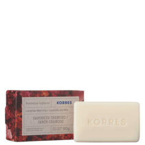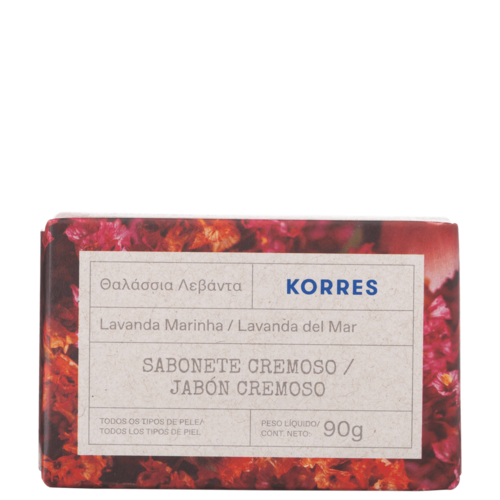 Sabonete em barra cremoso. Korres Lavanda do Mar da Grécia limpa suavemente, deixa a pele sedosa e com fragrância fresca.