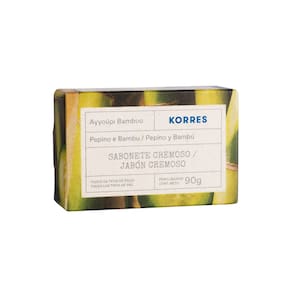 Sabonete em barra cremoso. Korres Pepino e Bambu limpa a pele com suavidade enquanto perfume com frescor e leveza.