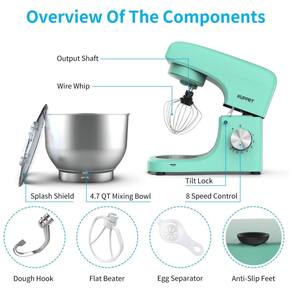 Voltagem 110V Potência da taxa 380W Frequência nominal 60Hz Capacidade da tigela 4,5 Litros Ruído 68 75DB dentro de 1M NW , GW 7,0 LBS , 8,8 . Misturador de mesa para cozinha A batedeira KUPPET é o seu ajudante perfeito na cozinha. Possui 8 velocidades de operação, juntamente com 380 W de potência e 3 diferentes ganchos de massa, que podem ser combinados para atender às suas diversas necessidades de cozimento. Tigelas, escudos contra respingos e acessórios são s para máquinas de lavar louça e, portanto, fáceis de limpar rapidamente. Tigela de aço inoxidável de 4.5L 8 velocidades contínuas com função de pulso Luz indicadora de LED ao redor do botão de velocidade Engrenagens sem fim Estrutura de transmissão Nível de baixo ruído 68 75Db Dentro de 1M de pés de borracha antiderrapante. Projeto da cabeça de inclinação, o misturador de suporte de cabeça inclinada não só fornece acesso fácil a a tigela e o mixer conectado, mas também facilita a instalação e remoção da tigela de aço inoxidável e 3 acessórios. Tigela de aço inoxidável A tigela de aço inoxidável oferece capacidade suficiente para misturar massa para 6 dúzias de biscoitos, 3 pães ou 3kg de purê de batata em um único lote. 8 velocidades poderosas o suficiente para quase qualquer tarefa ou receita, seja misturando ingredientes úmidos e secos, amassando massa de pão ou chantilly. Chicote de arame nível 6 8 Tempo de batedura 3 10min