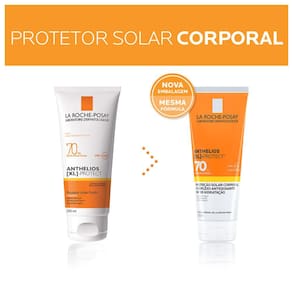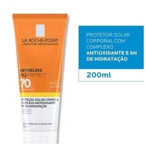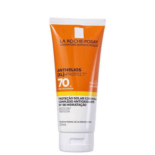 Protetor solar corporal para todos os tipos de pele. La Roche-Posay Anthelios XL Protect FPS70 tem muito alta proteção UVA/UVB que hidrata a pele por até 8h. Possui uma textura ultraleve que pode ser usada em todo corpo.