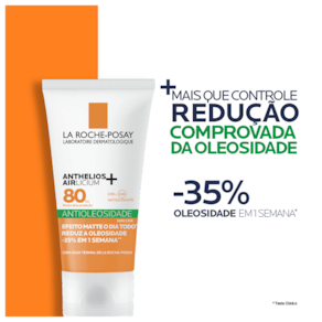 Protetor solar facial antioleosidade. La Roche-Posay Anthelios Airlicium FPS 80 protege a pele das agressões diárias dos raios UVA.