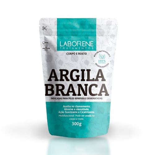 Laborene - 02 Argila em Pó Branca 300gÉ a argila que mais se aproxima do PH da derme, devido a isto, pode ser Utilizado por todos os tipos de pele, rica em alumínio e silício, absorve a oleosidade sem desidratar, e auxilia no clareamento de regiões escuras. Produto multifuncional, podendo ser Utilizado no corpo e rosto.- Hidrata e nutre a pele;- Auxilia no clareamento;- Ação suavizante e cicatrizante. Sugestão de uso:1 - Utilize um recipiente não metálico;2 - Misture a argila com água, até formar uma pasta cremosa e homogênea;3 - Com o auxílio de uma espátula ou pincel, espalhe na área a ser tratada;4 - Deixe agir durante 20 minutos. Enxágue fazendo movimentos circulares.O que você está comprando02 - Argila em Pó Branca Laborene - 300g. ANVISA 25351.836846/2020-40 Não testado em animais;Imagens meramente ilustrativas