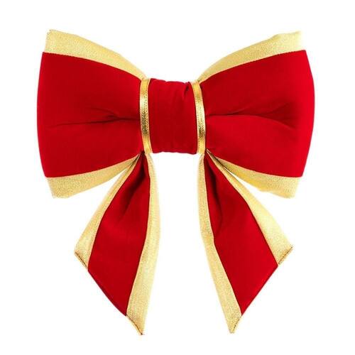 Nome: Laço de Veludo Vermelho Com Borda de Ouro Natal 30 Cm