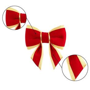 A borda dourada do laço destaca-se sobre o veludo vermelho, criando um contraste elegante e refinado. Seja para enfeitar a árvore de Natal, embalagens de presentes ou outros elementos decorativos, este laço é a escolha perfeita para quem busca sofisticação e estilo.