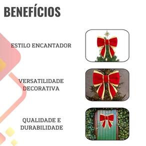 Perfeito para ocasiões especiais como festas, casamentos e celebrações de Natal, este laço adiciona um charme diferenciado a qualquer ambiente. Feito com materiais de alta qualidade, ele é ideal para complementar a sua árvore de Natal ou adornar presentes de forma única e memorável.
