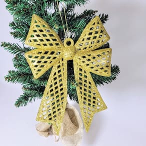 Laço Dourado Para Árvore De Natal 23x16cm Penduricalho Vem decorar, seja INIGUAL